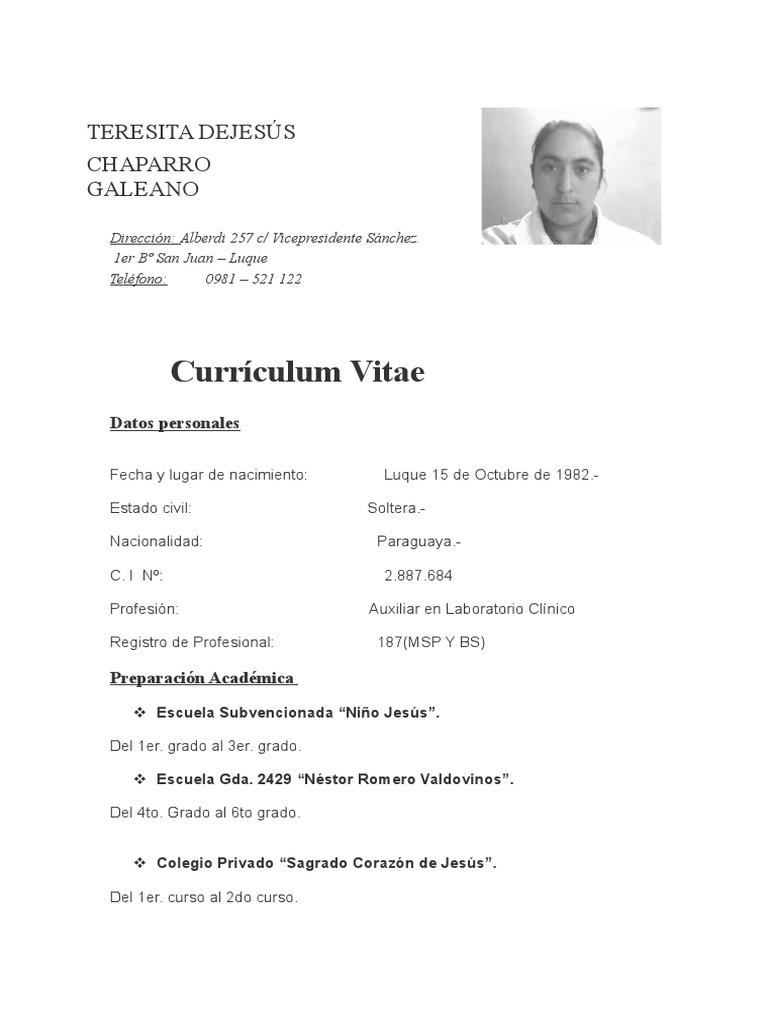 Currículum Vitae Ejemplo Paraguay : Curriculum Maria Eva Mansfeld De Aguero Pdf Multilinguismo Paraguay : Auditoría financiera | qué es, significado, concepto y definición.. Actualiza tu perfil cada 20 días en las páginas que te hayas registrado. Por ejemplo abzu 001234 3 Mar 23, 2019 · también puede usar esta foto para su curriculum vitæ (o currículum vítae, en español) "carrera de la vida". Por ejemplo abzu 001234 4. Se genera mediante un calculo complicado recogido en las normas.